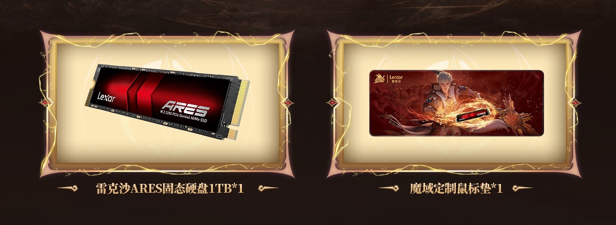 《魔域》以其宏大的世界观、丰富的故事情节和刺激的游戏体验,赢得了全球玩家的喜爱。而今,雷克沙将这份热血与激情融入到了联名定制礼盒之中。本次联名礼盒的核心亮点——雷克沙ARES PCIe Gen4x4 M.2 2280 NVMe 固态硬盘,以PCIe 4.0下近满级的理论速度引领存储新潮流。顺序读取速度高达7400MB/s,顺序写入速度更是达到惊人的6500MB/s,让玩家在瞬息万变的战场上实现秒速响应,拒绝任何等待。无论是加载庞大的游戏地图,还是处理复杂的游戏场景,ARES SSD都能轻松应对,助力玩家在《魔域》的奇幻世界中自由穿梭,畅享游戏的无限可能。