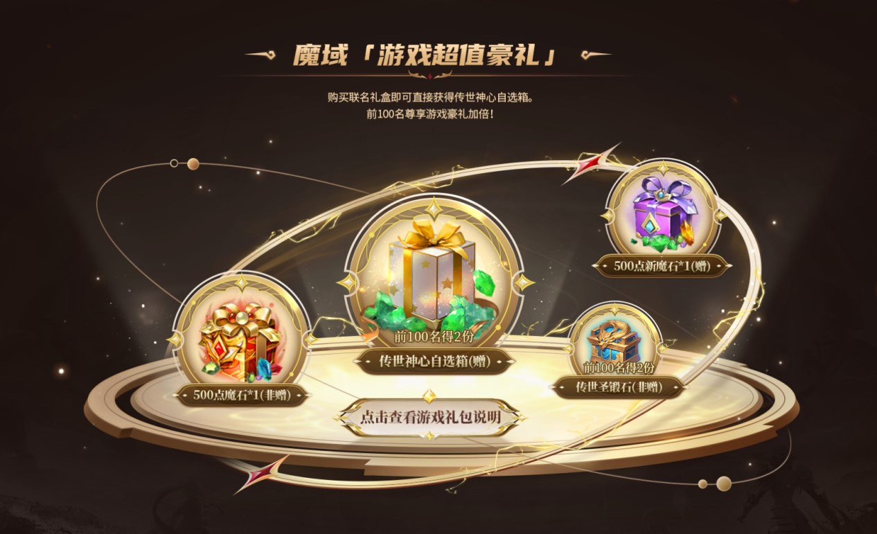雷克沙x魔域联名定制礼盒的上市,是游戏文化与科技创新完美融合的见证。它将以卓越的性能、可靠的品质和无与伦比的游戏体验,引领玩家们步入一个全新的游戏时代。现在购买联名礼盒即可拥有“雷克沙甄选礼箱”及“雷克沙优选礼箱”,内含传世神心自选箱等珍稀道具,助您战力飙升!更有海量传世圣锻石、魔石卡[500点]及新魔石卡[500点]倾情相赠,资源满满,助力亚特大陆征途再启,辉煌无限!前100名尊享游戏豪礼加倍!更多传世神心自选箱及传世圣锻石等你来拿!让我们共同期待,在雷克沙与《魔域》的携手下,与兄弟们并肩作战,开启更多令人热血沸腾的冒险之旅!